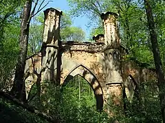 Київська область. Руде Село. В'їзна брама до поруйнованої садиби в стилі палладіанство