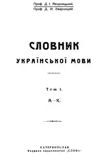 - Яворницький Д. I. Словник української мови. – Т. 1. А – К. — Катеринослав, — 1920. — 411 с.