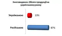 На книжковому ринку України переважають російськомовні видання. За даними Української асоціації книговидавців і книгорозповсюджувачів, більшість книжок, що їх реалізують в Україні, вийшли друком у Росії.