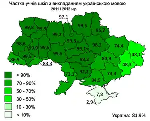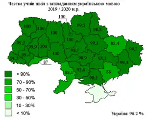 - Частка учнів у школах України, що навчаються українською