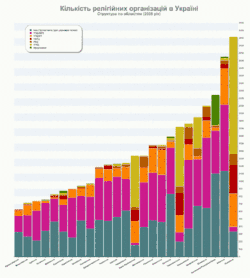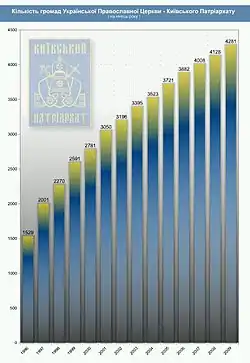Українська православна церква Київського Патріархату є домінантна конфесія на території країни за рівнем зростання (200—300 парафій та інших структур на рік[13]).