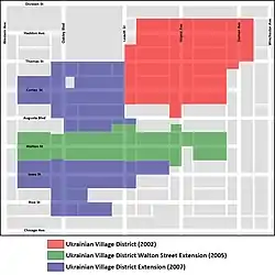 У грудні 2002 року Українську околицю було оголошено районом-пам'яткою Чикаго, а в 2005 та 2007 роках формальні межі району було розширено.[3][4]