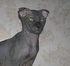Виставочні кішки першого етапу розведення можуть бути як повністю безшерстими, так і з залишковим волосяним покривом на мордочці, за вушками, на кінцівках, хвості та рівномірно повністю "одягнені" у коротеньку (1-3 мм) велюрову шерсть по всьому тілу.