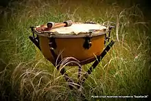 - Барабан з тарілкою — Горнбостель-Закс номер 211.212.1 + 111.142: