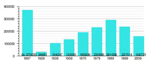 - 1897 — 311 145 — 4,79 %[5] (за рідною мовою)[6]