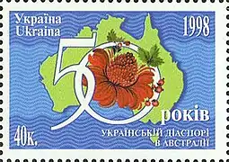 Поштова марка України 1998 р., присвячена 50-річчю української діаспори в Австралії