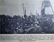 У другій половині 1917 року загальні збори воїнів-українців Чорноморського флоту та гарнізону, робітників і громадян міста Севастополя протестували проти рішення російського Тимчасового уряду обмежити автономію України 5-ма губерніями (Волинською, Подільською, Київською, Чернігівською та Полтавською — без інших етнічно українських земель)[73]. За результатами Третього Військового з'їзду в Києві 20 жовтня 1917 року було ухвалене рішення про українізацію Чорноморського флоту, 70-80 % складу якого тоді становили українці[74][75]. Після проголошення Українською Центральною Радою 19 листопада 1917 року Третього Універсалу в Севастополі відбувся військовий парад, а майже половина кораблів флоту вивісила український прапор[72]. Всечорноморський з'їзд у листопаді 1917 року ухвалив рішення надіслати на підтримку Центральної Ради 600 озброєних моряків і 17 делегатів від Чорноморського флоту[76].