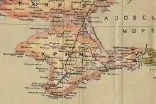 За даними, представленими на Всекримській конференції нацменшин 1930 року, у Криму діяло 17 українських шкіл, серед яких одна неповна середня[109]. На початку 1930-х років на півострові налічувалося вже понад 40 українських шкіл[109]. 1930 року в Криму утворено 16 районів, серед них — Ішуньський як український національний район[9]. Водночас було створено 12 українських національних сільських рад[9][* 4]. Проте вже через декілька років на тлі боротьби з «буржуазним націоналізмом» радянська влада відмовилась від адміністративного поділу за національністю та політики «українізації»[9][109]. Указом Наркомосвіти РСФРР від 9 липня 1933 року усі українські школи федерації переводилися на російську мову навчання[110].