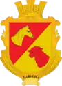 Квадратне полотнище розділене від древка по висхідній діагоналі на червоне і жовте поля. На древковій частині жовта голова лошатка, на вільній — червона голова ягнятка, обернені одна до одної.