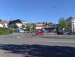 Містечко знаходиться у південно-східній частині лена Вестра-Йоталанд за 376 км на південний захід від Стокгольма.
