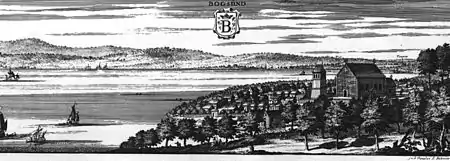 Сюжет герба походить з міських печаток XVІІІ століття і представляє монограму королеви королеви Ульріки Елеонори.