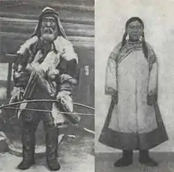 Традиційний чоловічий і жіночий одяг — халати покрою кімоно, найчастіше тканяні або замшеві, зимові — на ватяній підкладці хукту), святкові — подеколи суціль вишиті й оздоблені аплікацією. Виготовлялись також арми — одежина з риб'ячої шкури, ровдуги, взимку — хутряні кожухи. Під халатом носили штани, ногавиці (з тканини, на ваті, з риб'ячої шкури, ровдуги), нагрудник (чоловічий — малий хутряний, жіночий — подовжений, гаптований бісером, металевими бляхами). З іншого одягу — чоловічі спідниці з нерп'ячих шкур, мисливські фартухи і куртки з лосячих шкур, святкові орнаментовані накидки і фартухи, невеликі хутряні шапочки, що носили з тканяними шоломами тощо. Одяг (особливо жіночий) прикрашався хутряною мозаїкою з окрайків собачого, лисячого або білячого хутра, оленячого волосся тощо.