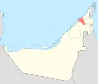 На півдні межує з еміратом Шарджа, на північному сході — з еміратом Рас-ель-Хайма. На північному заході знаходиться узбережжя Перської затоки протяжністю 24 кілометри. Територія простягається у глибину приблизно 32 кілометри.