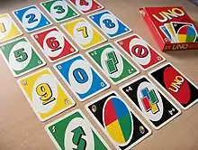 Гральні карти «Уно» - Гравець, який грає передостанньою картою, має вигукнути «уно» як попередження для інших.[2]