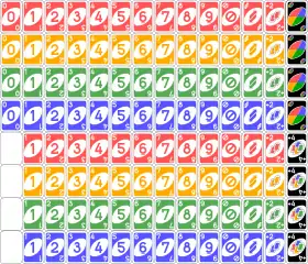 - 19 синіх карт — від 0 до 9