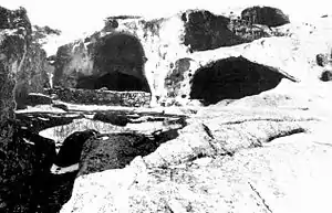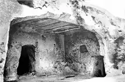 Посередині забудови розташований штучний рів зі сходами, від якого починається тунель у вигляді круглої (діаметр 3 м) шахти, що спускається до підошви скелі. Вона була таємним входом в місто і при необхідності пов'язувала його із зовнішнім світом.