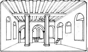 У другій половині 6 століття в центрі міста з'явилася наполовину висічена в скелі досить велика (400 м²) тринефна базиліка з двома парами колон, з глибокою підковоподібною апсидою, з перекритим хрестовими зведеннями північним нефом і з південною стіною, зведеною різним каменем.