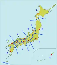 | 7 | Кіта-Кюсю | Ямаґуті (захід), Фукуока, Наґасакі, Ойта, Кумамото (північ) |