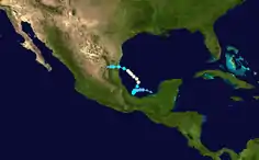 ![]() Мапа руху та інтенсивності Урагану Інгрід за Шкала ураганів Саффіра-Сімпсона. | ||||