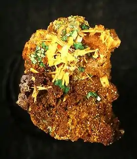 Вторинний мінерал з родовищ урану в Зах. Європі (копальня «Білий олень», Саксонія, ФРН), шт. Юта (США).