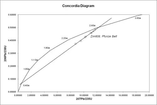 Використання двох ізотопів урану дає можливість визначити вік об'єкта навіть у разі втрати їм деякої частини свинцю. Оскільки 235U розпадається швидше, ніж 238U, відношення росте швидше, ніж . Для зразків, в історії яких не було втрати або привнесення ізотопів, які розглядаються, обидва ці співвідношення ростуть з віком строго визначеним чином. Тому на графіку, уздовж осей якого відкладені ці величини, точки, що відповідають таким зразкам, можуть лежати тільки на одній певній лінії. Ця лінія відома як конкордія або крива узгоджених значень абсолютного віку. По мірі старіння зразка точка рухається уздовж неї. Таким чином, кожній точці конкордії відповідає певний вік зразка. Нульовому віку відповідає початок координат (0,0).