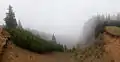 Панорама урвища Пекло туманного ранку у травні 2014 року