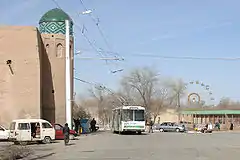У Хіві кінцева зупинка розташована біля північної стіни фортеці Ічан-Кала (внесено до Світової спадщини ЮНЕСКО), східніше від північних воріт. На захід від фортеці існує ділянка контактної мережі, котрою не користуються, із розворотним кільцем біля західних воріт. Цю ділянку не з'єднано стрілками із загальною мережею, проте нею користуються для скорочення маршруту.