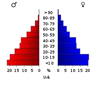 Таким чином, молодь у віці до 25 років становила близько 45,56 % населення Урка.