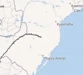 На території Бразилії: Каноас і Пелотас (які утворюють річку Уругвай), Чапеко (248 км), Пепірі-Гуасу (на кордоні з Аргентиною), Пассо-Фундо (200 км), Варзеа, Іжуі, Піратін (120 км), Ісамакуя і Ібікуї (290 км);