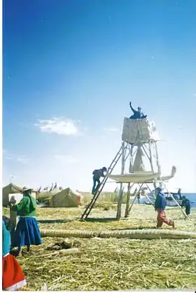 ![]() Збір очерету на березі озера Тітікака | |