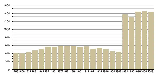 - Avant 1968 : Cassini ; depuis 1968 : recensements INSEE ; 2006 : enquête INSEE. Consultations : juillet 2008., наведено за французькою вікіпедією