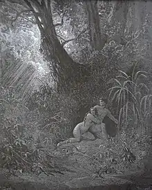 Після поїдання плоду любов Адама і Єви починає носити інший, примітивний, характер. Спочатку Адам переконаний, що Єва була права, думаючи, що вживання в їжу плоду було корисним. Проте, незабаром вони засинають і бачать страхітливі кошмари, а після пробудження вперше відчувають почуття провини і сорому. Розуміючи, що вони скоїли страшне діяння проти Бога, вони починають звинувачувати одне одного.