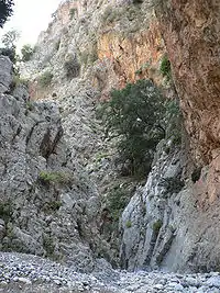 Ущелина простягається на відстань близько 13 км на східній окраїні плато Катара.[2] Глибина ущелини сягає 300 м, а ширина не менше 1,5 м. Дві скелі утворюють тут вхід у масив печер, які були часто використовувались критськими революціонерами і союзними силами під час німецької окупації.