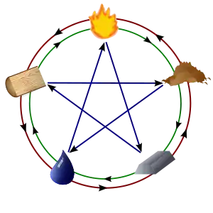Включає в себе п'ять класів (Вогонь, Вода, Дерево, Метал, Земля), що характеризують стан і взаємозв'язок всіх існуючих предметів і явищ.