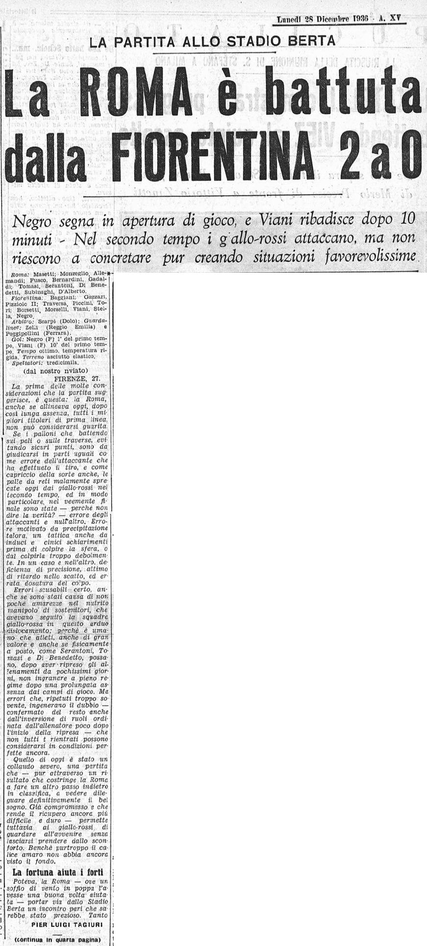«Рома»: Чезаре Валінассо, Еральдо Мондзельйо, Луїджі Аллеманді, Еварісто Фрізоні, Фульвіо Бернардіні, Андреа Гадальді, Амедео Амадеї, П'єтро Серантоні, Данте Ді Бенедетті, Альфредо Маццоні, Ернесто Томазі, тренер: Луїджі Барбезіно