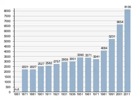 Станом на 31 грудня 2014 року в муніципалітеті офіційно проживало 786 іноземців з 51 країни, серед них 448 громадян країн Євросоюзу та 18 громадян України.[4]
