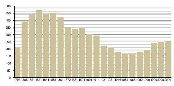 Динаміка населення (base Cassini de l'EHESS pour les nombres retenus jusque 1962[3], base Insee à partir de 1968 (population sans doubles comptes puis population municipale à partir de 2006)[4] · [5] ):