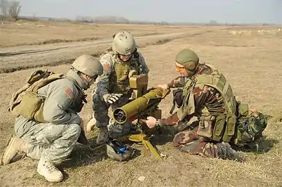 - Інструктаж бійця полку «Азов» з техніки використання ПТРК «Фагот».