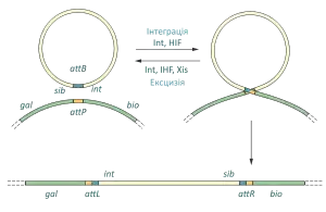 Регуляція експресії int і xis під індукції профага та ексцизія