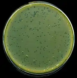![]() Зони лізису на культурі клітин E. coli, спричиненні зараженням фагом лямбда | ||||||||||||