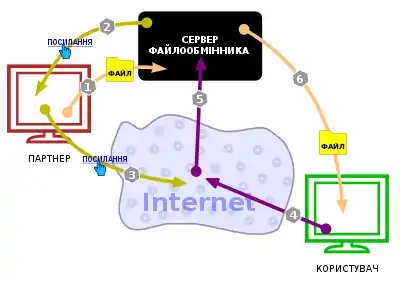 - Файлообмінник генерує посилання