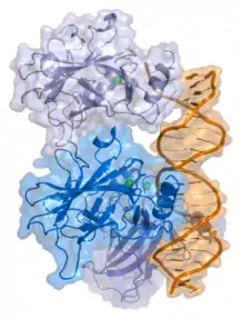 - Домен транс-активації, що містить ділянки, куди можуть приєднуватись інші білки, такі як транскрипційні ко-регулятори. Ці домени часто фігурують в контексті активаторної функції[22]