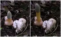 Плодове тіло гриба Mutinus caninus з різницею в декілька годин (заповідник «Медобори», Тернопільська область, Україна