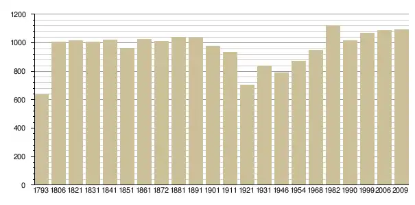 Динаміка населення (base Cassini de l'EHESS pour les nombres retenus jusque 1962[3], base Insee à partir de 1968 (population sans doubles comptes puis population municipale à partir de 2006)[4] · [5] ):
