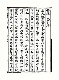 Книга «У лі сяо ши» 物理小識, що складається з 12 «сувоїв»-цзюаней, вперше була опублікована в епоху Кансі (1662—1722), а потім, перевидавалася у 1884 і 1937 роках. У ній Фан Їчжи не тільки виклав доступні йому наукові відомості в гранично широкому діапазоні, що включало астрономію, метеорологію, географію, мінералогію, ботаніку, зоологію, літочислення, музикознавство, антропологію, медицину, кулінарію, історію одягу і начиння, окультні науки, мантики та ін, але й запропонував класифікацію знань, які в найзагальнішому вигляді розділив на три сфери: філософську, природознавство, управлінську.