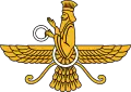 Імператорський герб до революції, що містить фаравахар. Це був символ зороастризму — державної релігії Перської імперії. Нині це загальний символ сучасної та давньої іранської держави. Хоча зороастризм вже не є державною релігією Ірану, він є важливим, звичним і традиційним символом