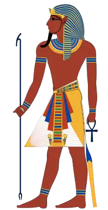 - Батіг або ціп (нехех) зазвичай зображується разом з жезлом-гаком.