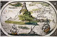 Фароський маяк був побудований за династії Птолемеїв між 280-м та 247-м рр. до н. е. Маяк сягав 100 метрів заввишки і протягом багатьох століть лишався однією з найвищих споруд у світі.[2] Маяк був сильно пошкоджений землетрусами 956, 1303 і 1323 років, унаслідок чого споруда перетворилася на закинуті руїни. Остаточно Александрійський маяк був зруйнований 1480 року, коли останні з його каменів використали для зведення фортеці Кайтбея.