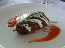 У грузинській кухні дуже популярні баклажани, фаршировані соусом з волоських горіхів сацебелі.