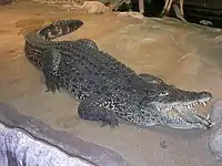 Ще одним ендемічним видом є кубинський крокодил (Crocodylus rhombifer Cuvier), який був майже повністю винищений. Живе він в охоронюваних місцях на болотах Сапата і Ланьєр. Крокодили населяють прісні водойми і більшу частину доби проводять у воді. На сушу виходять вранці і ближче до вечора. Часто лежать із широко відкритою пащею, що пов'язано з необхідністю регулювати температуру тіла. Відкладають яйця завбільшки з курячі, а самка залишається поблизу кладки, захищаючи її від ворогів. Полюють ночами. Крім риби поїдають будь-яку здобич, з якою можуть впоратися.